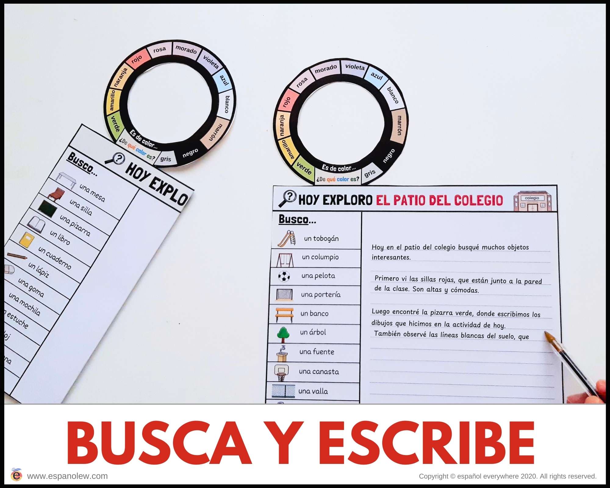Encontrarás lupas con colores y para practicar vocabulario de la naturaleza. Buscad objetos en casa, clase o al aire libre. Dibujadlos y escribid el color. Si quieres que os duren para múltiples usos, podéis plastificarlas o poner papel adhesivo transparente onde vayáis a escribir.