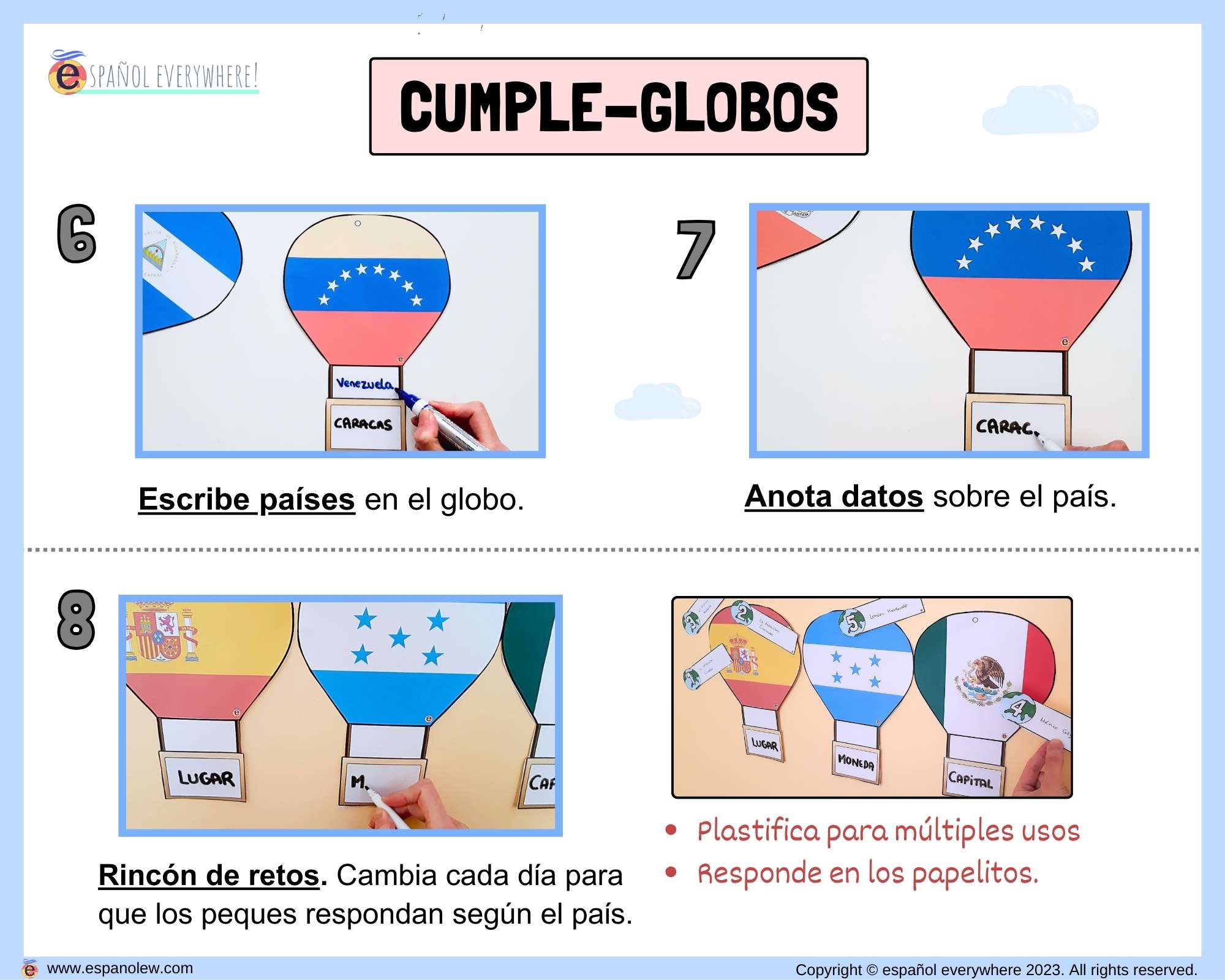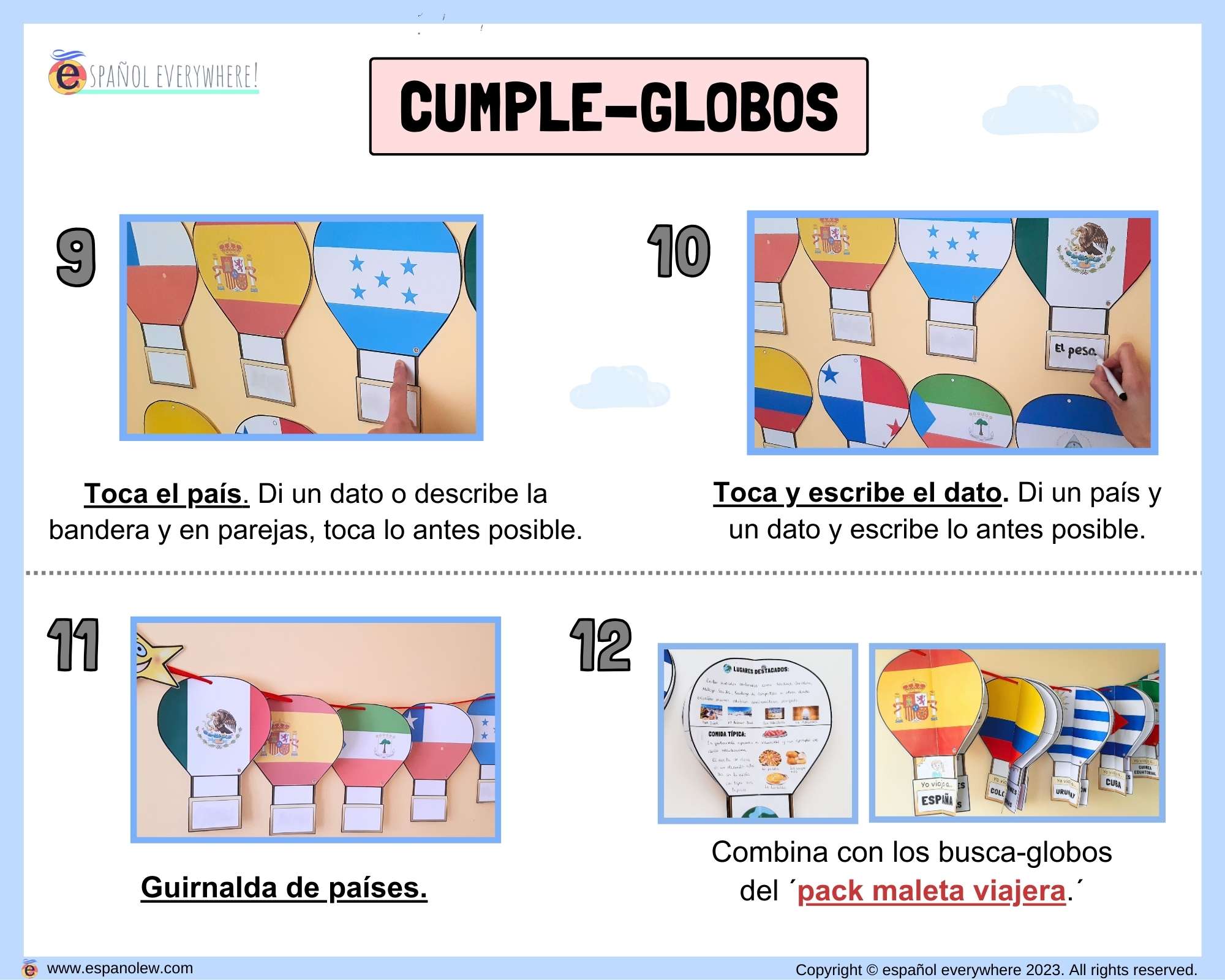 En el caso, quieras más ideas con globos de países, te dejo un vídeo con la verión para anotar datos del pack ´la maleta viajera´.