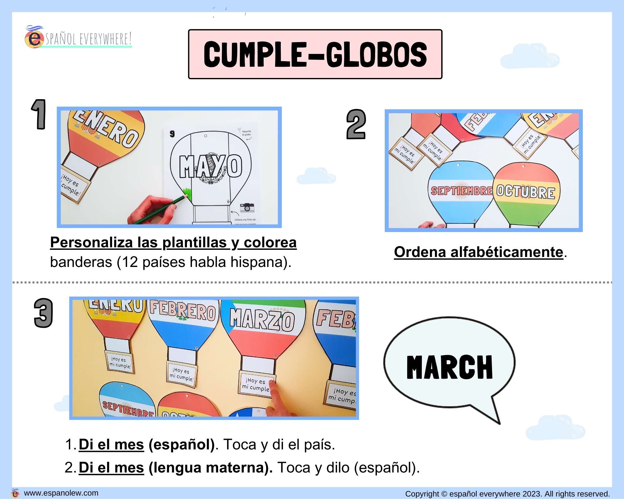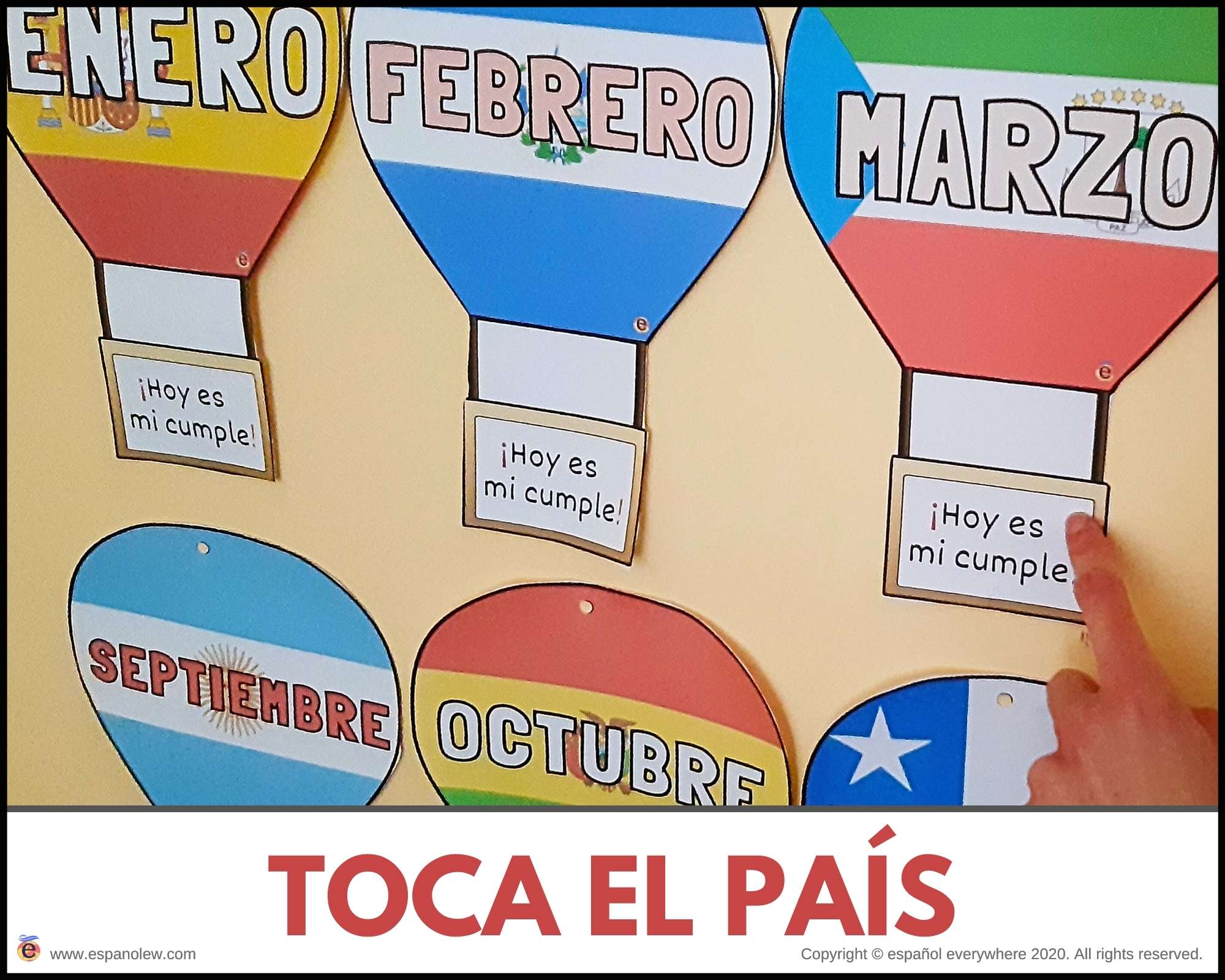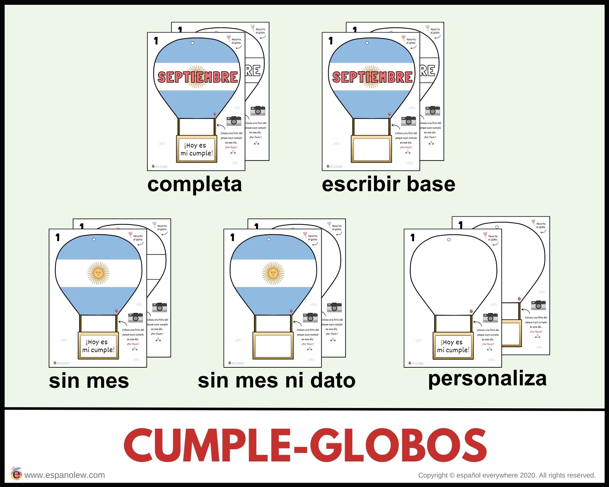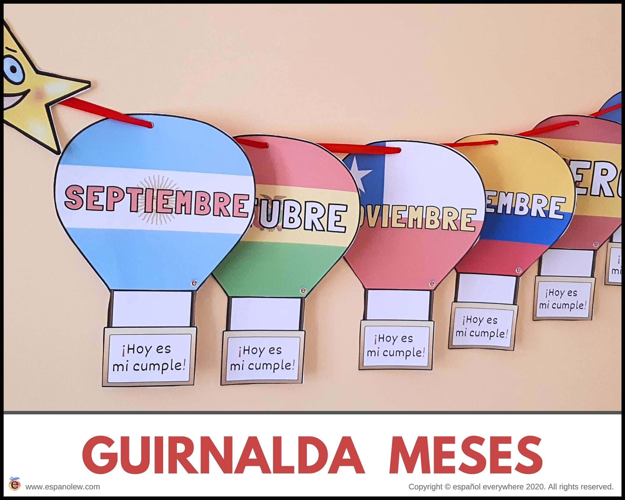 Encontrarás los meses con y sin países hispanohablantes. En esta última variante, cada mes se corresponde con la bandera de un país de habla hispana. Si lo deseas puedes, descubrir más ideas con en ´el pack hispanohablante´. También puedes complementar con ´el sombrero cumpledad´ y ´las tarjetas de cumple´.