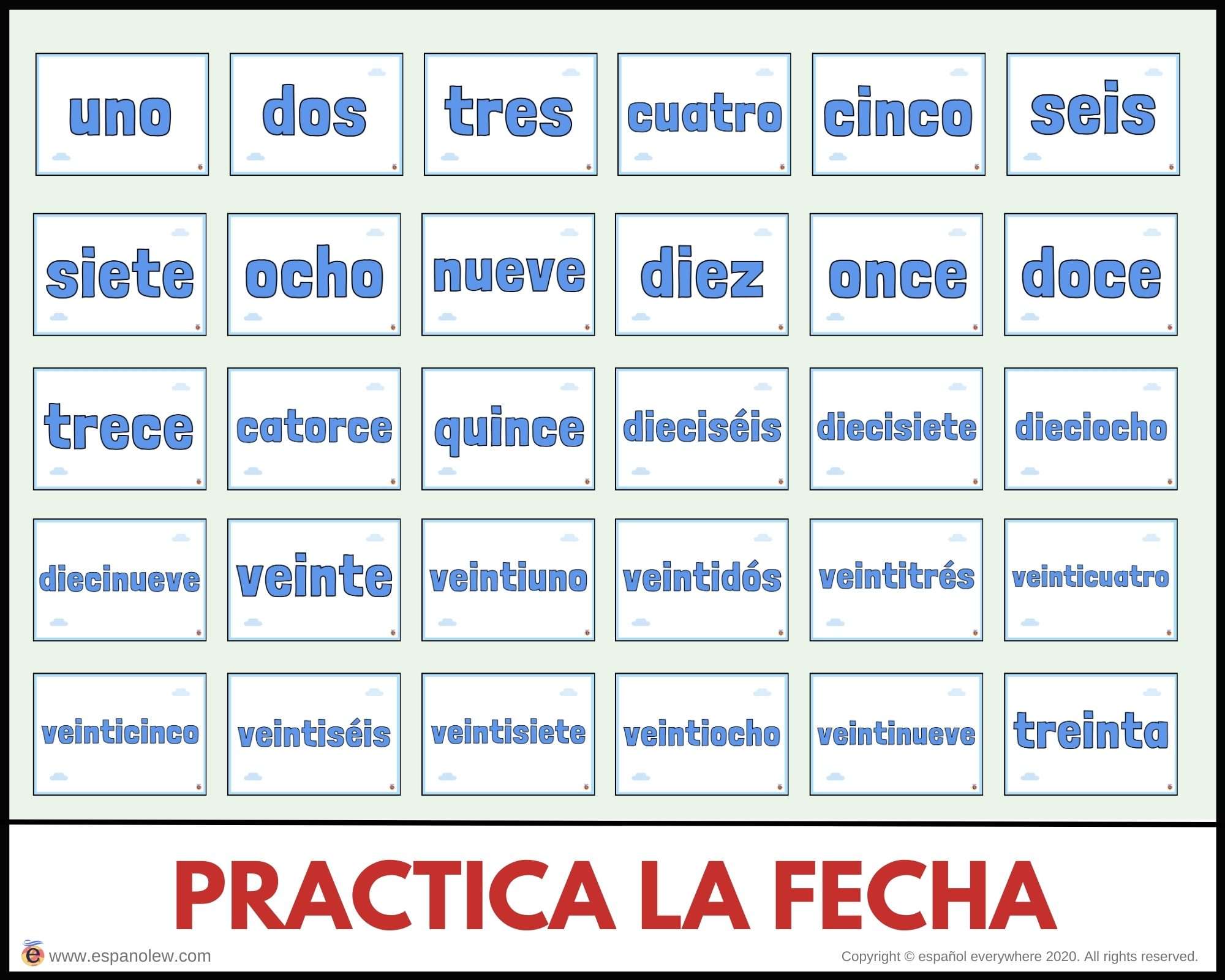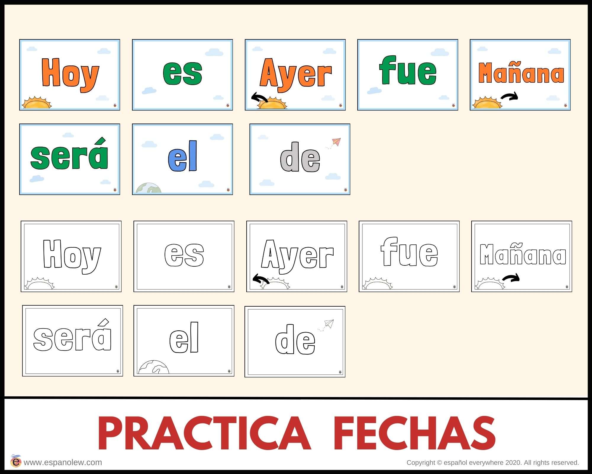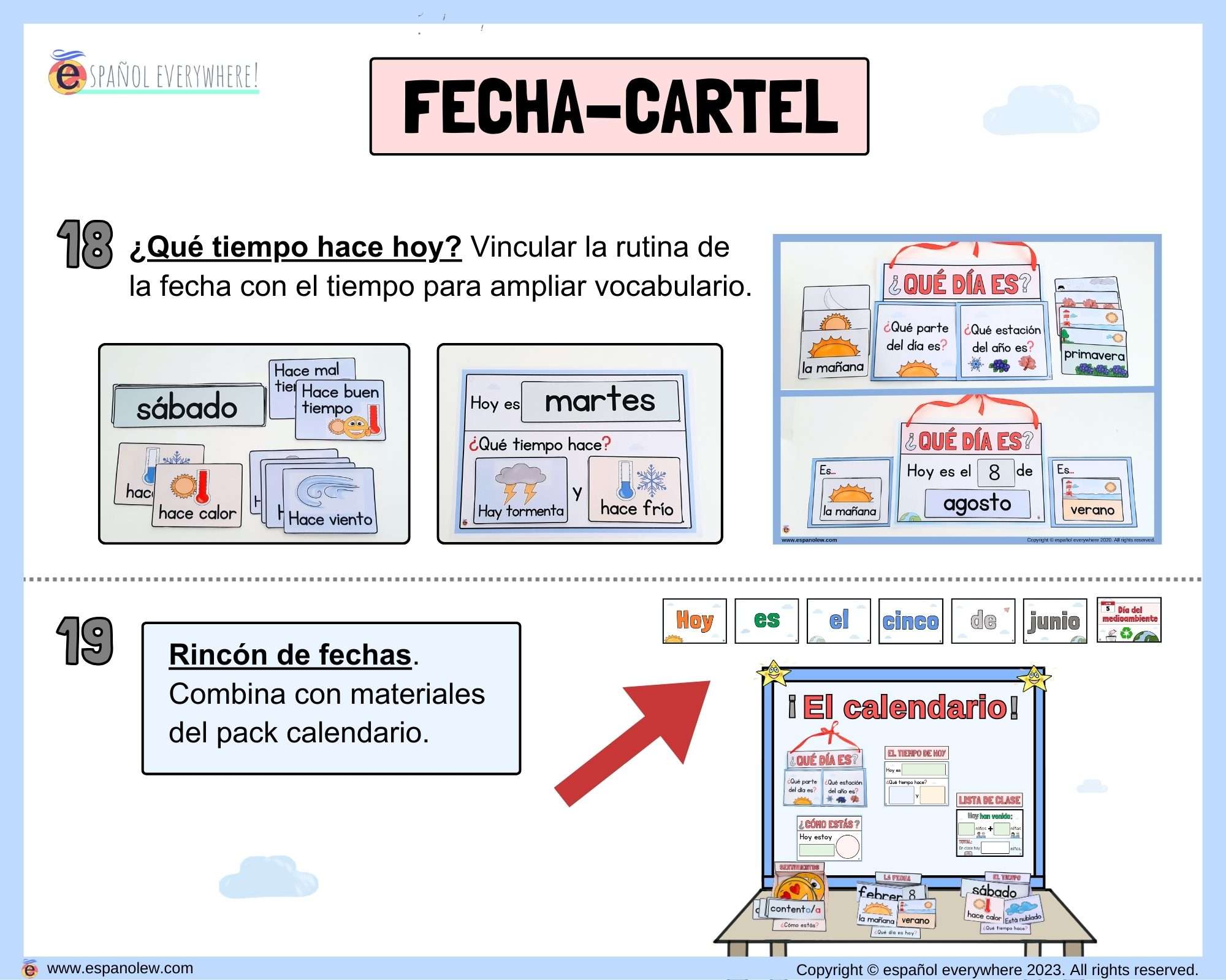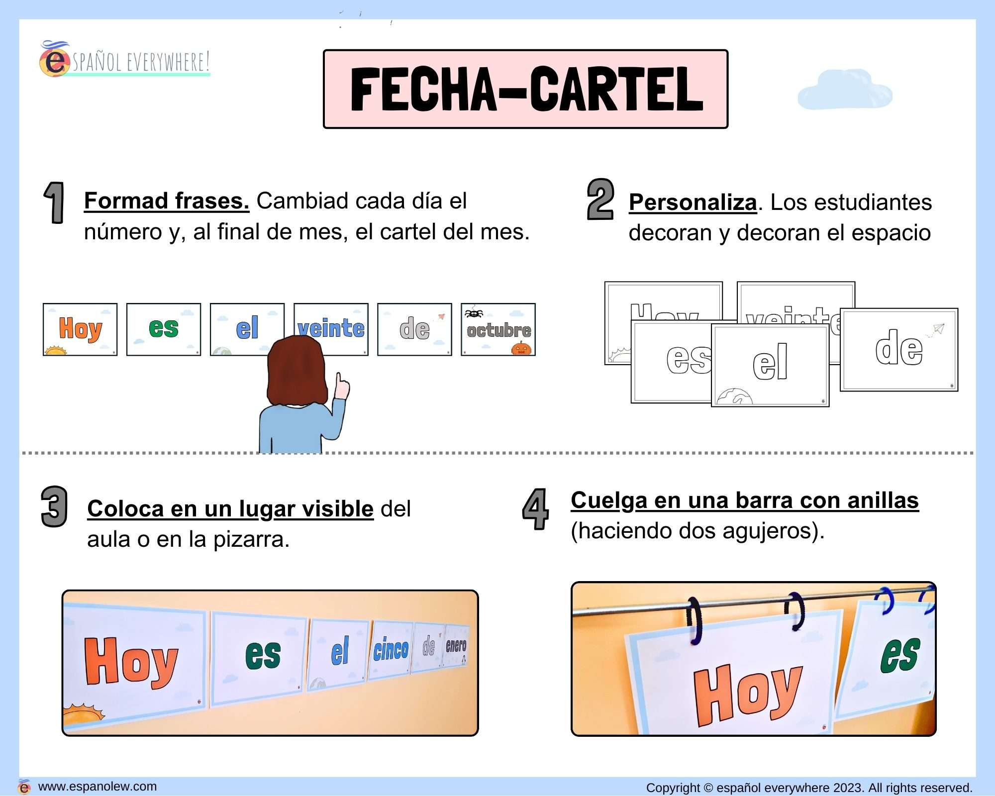 Este pack también permitirá a tus estudiantes practicar la fecha con carteles que puedes colocar en un lugar visible para tener siempre a mano, o imprimir a escala más pequeña para usar en juegos o pegar en la libreta.