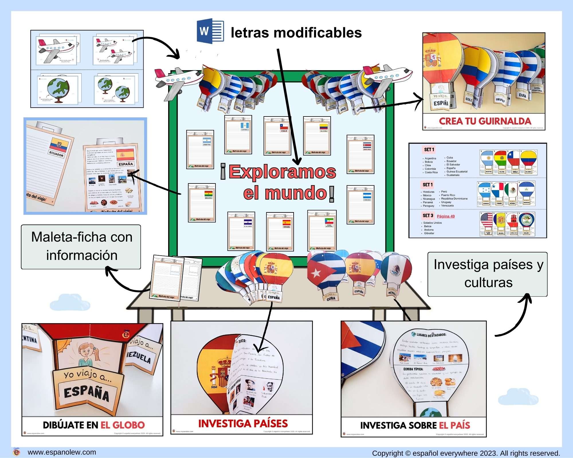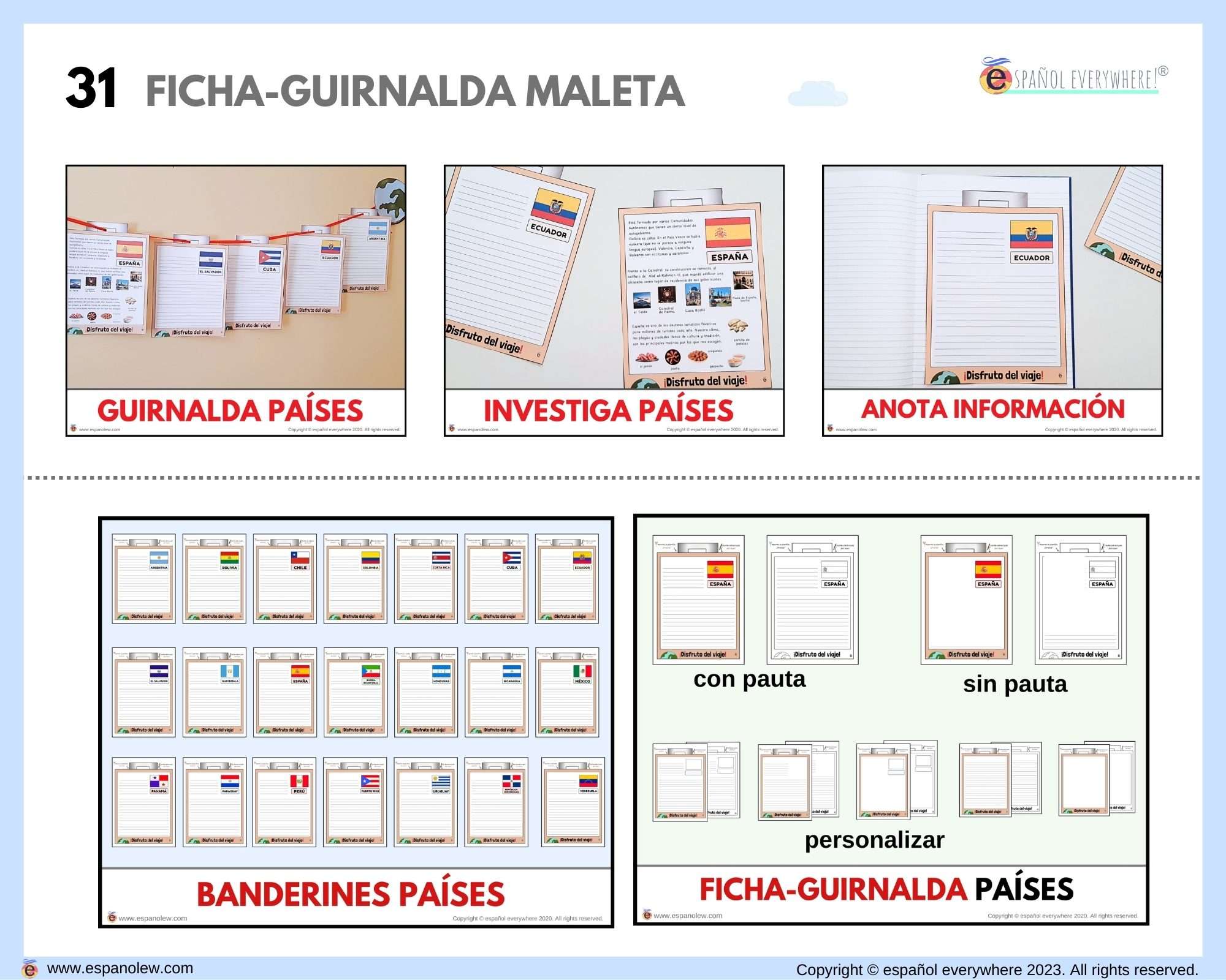 No te pierdas el súper pack ´la maleta viajera´ con 31 recursos (4 presentaciones PPT y distintos materiales en papel) que os permitirán explorar banderas y países tanto de habla hispana como del mundo en un sinfín de sesiones.