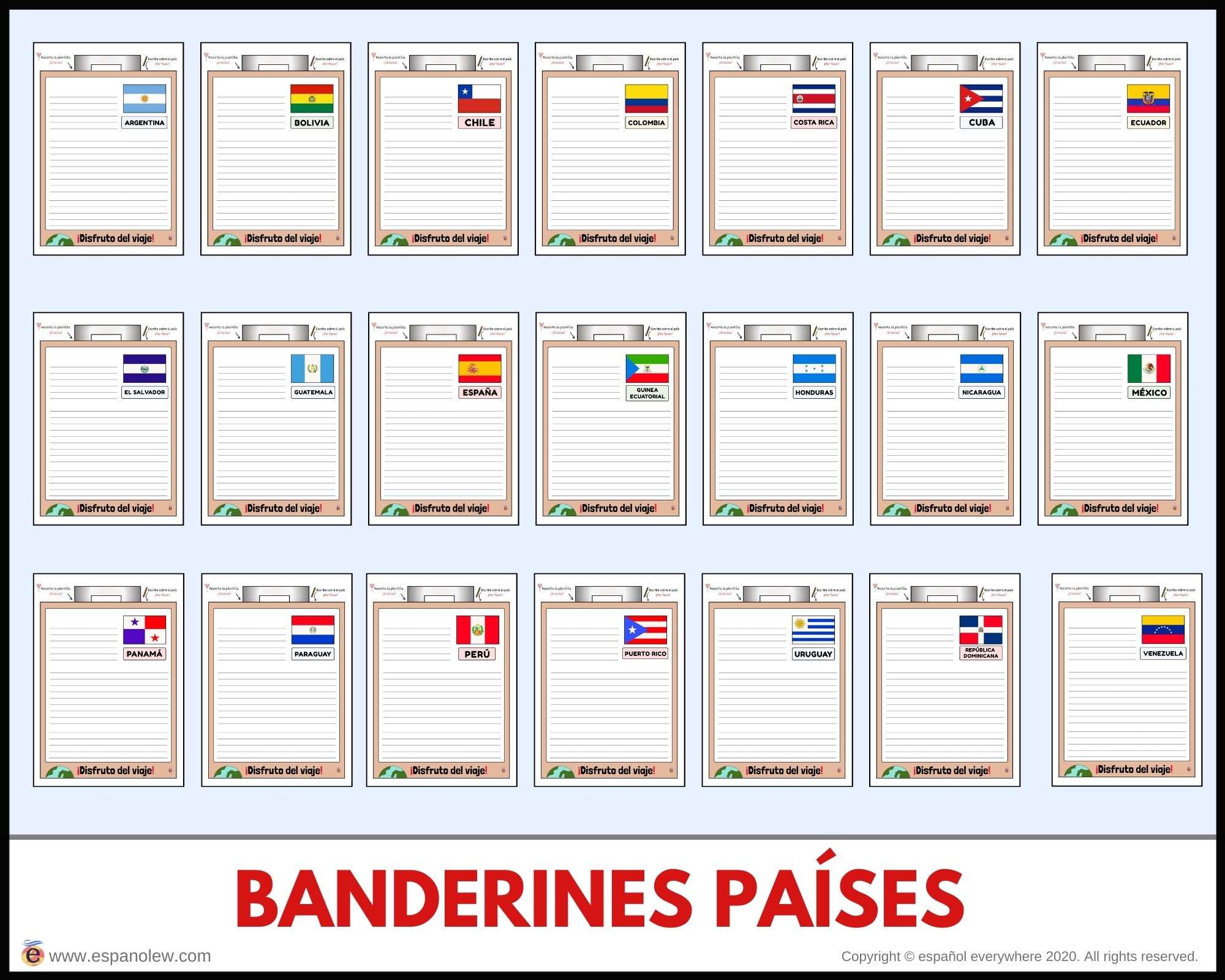 Encontrará maletas con 21 países hispanohablantes así como otros modelos con países del mundo e idiomas. Si hay algún país que quieras añadir a la lista, puedes usar las plantillas personalizables.