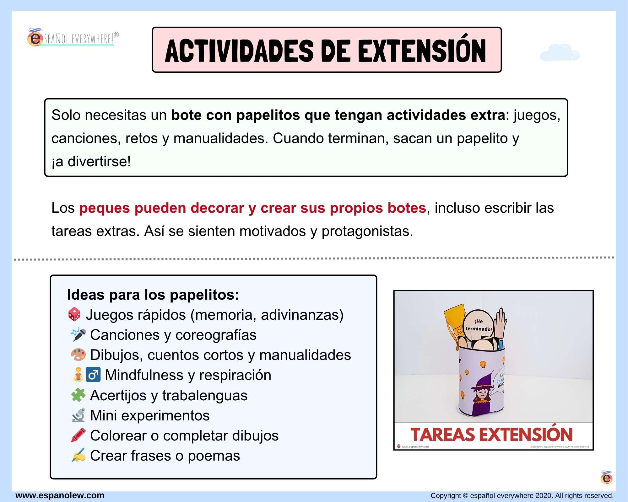Meted los papelitos en los botes y completad el mayor número con conceptos que recordéis sobre un tema. También puedes pedir a tus peques que escriban retos e intercambien botes con sus compañeros. Además encontrarás decoraciones para crear botes de mensajes, logros, tareas, retos, buenas acciones, actividades extras y más ideas qeu te explico en el vídeo.