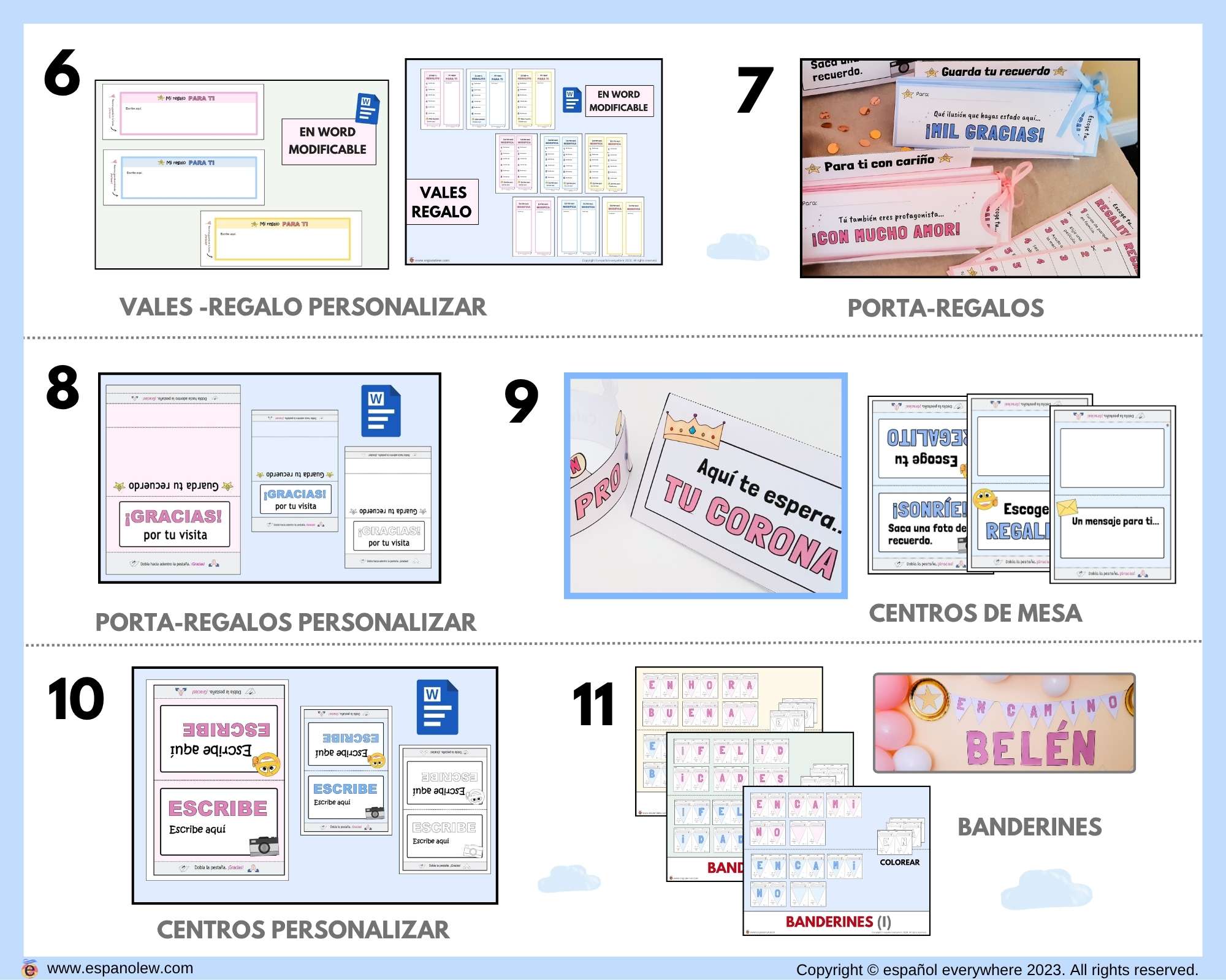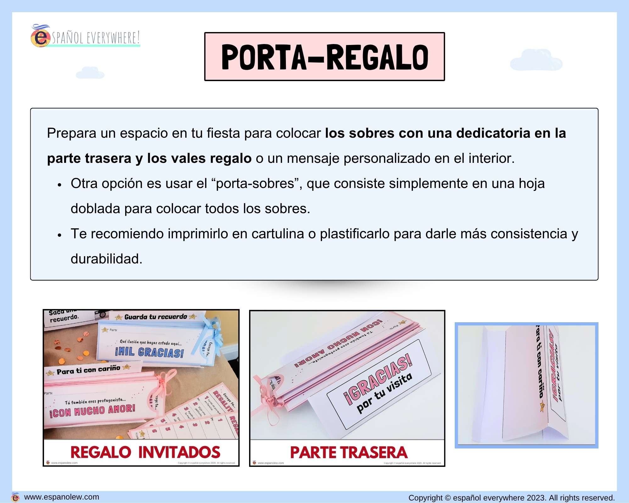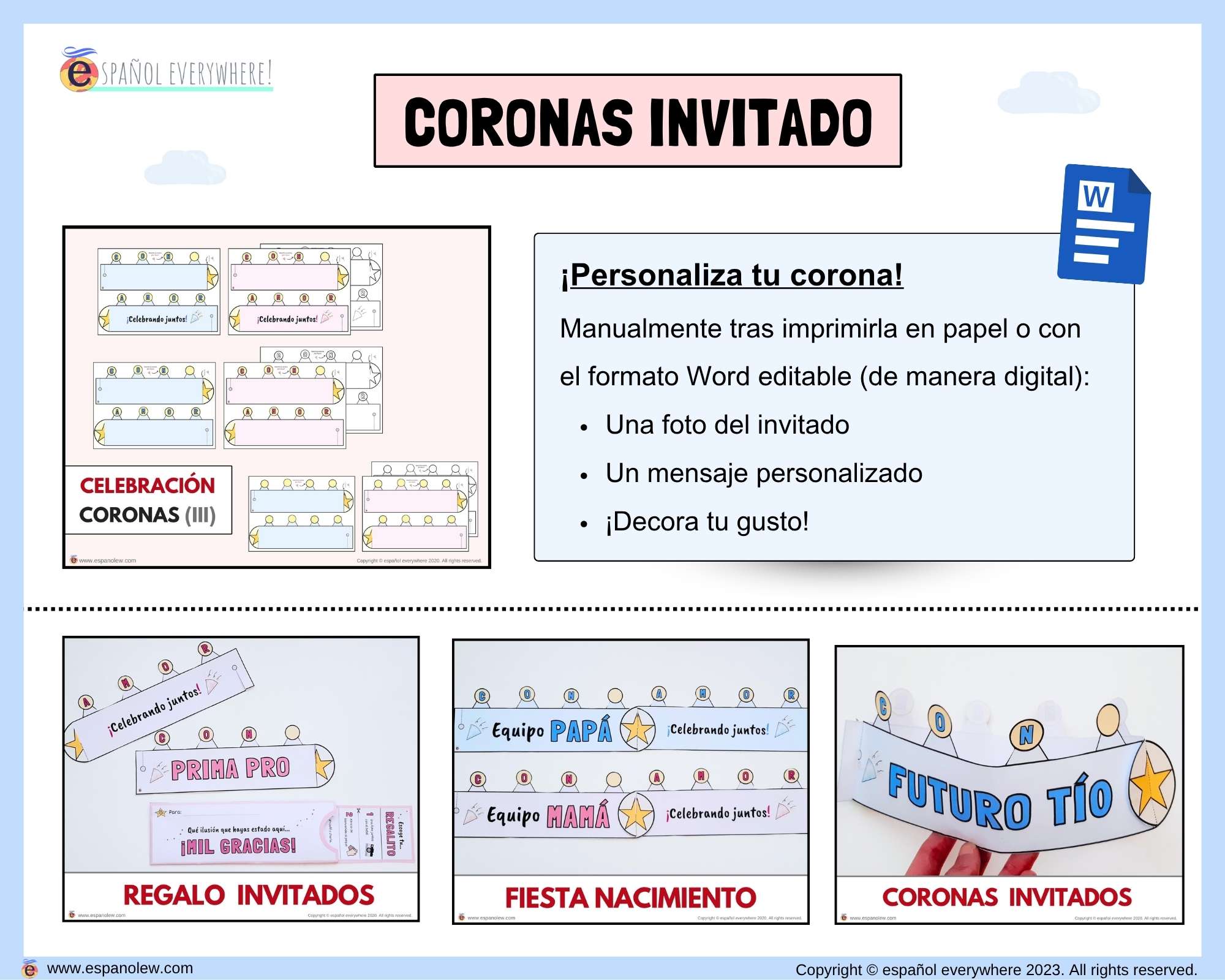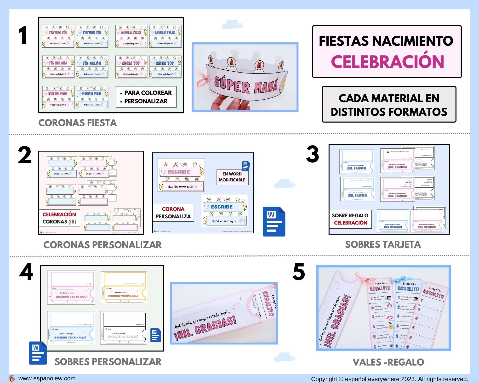 Este pack es fácil de preparar, con precio fijo sin importar el número de invitados. Perfecto para que adultos y niños personalicen detalles. Los materiales digitales son reutilizables y 100% personalizables para adaptar a tu estilo y cualquier celebración, creando un ambiente emotivo y lleno de cariño.