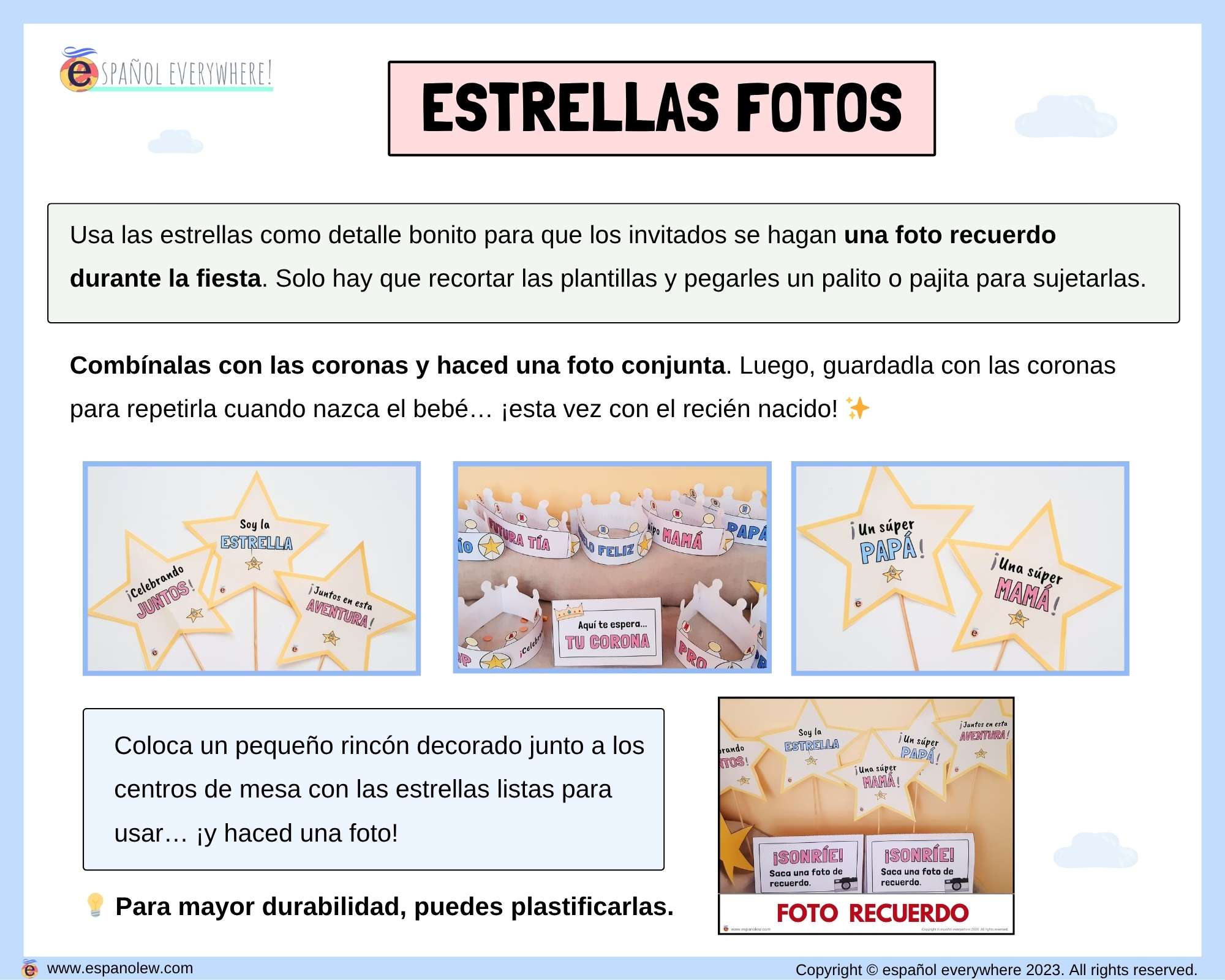 Aprovecha la celebración para sacar una foto de recuerdo. Poneros vuestras coronas, escoged una estrella y plasmad ese momento tan especial.