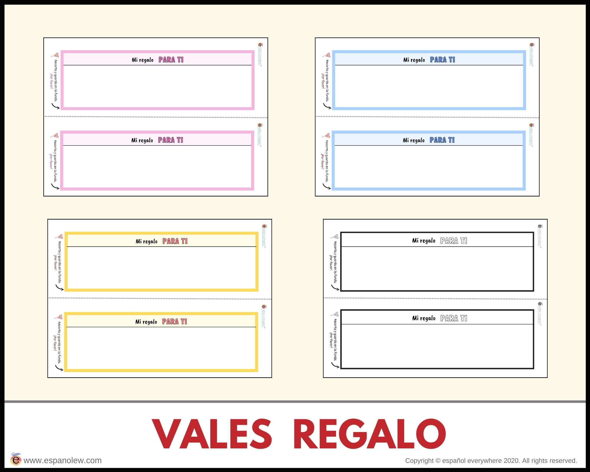 Una forma emotiva y original de regalar momentos o actividades especiales para compartir en familia o con amigos. Los vales son completamente editables para que los adaptes a tu gusto y los guardes en los sobres.